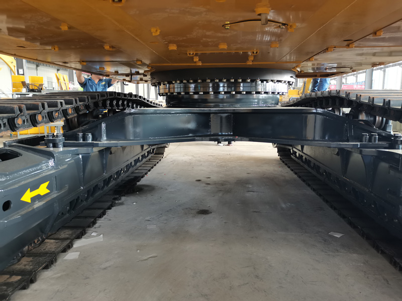 Với khoảng sáng gầm tối thiểu vượt trội lên đến 1382 mm và hệ thống khung gầm chắc chắn với 9 con lăn phía dưới, máy có khả năng vượt trội trong việc di chuyển qua các tảng đá lớn, mảnh vụn và địa hình gồ ghề mà không bị hư hại. Thiết kế này rất quan trọng để duy trì thời gian hoạt động và tính cơ động tại các công trường phá dỡ và khai thác đá.